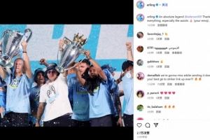 哈兰德晒出他与埃德森三冠王赛季共同庆祝的合照,并配文:“一位绝对的传奇人物@埃德森!谢谢你的一切,尤其是你的助攻(你的表情符号,总是如此)”
